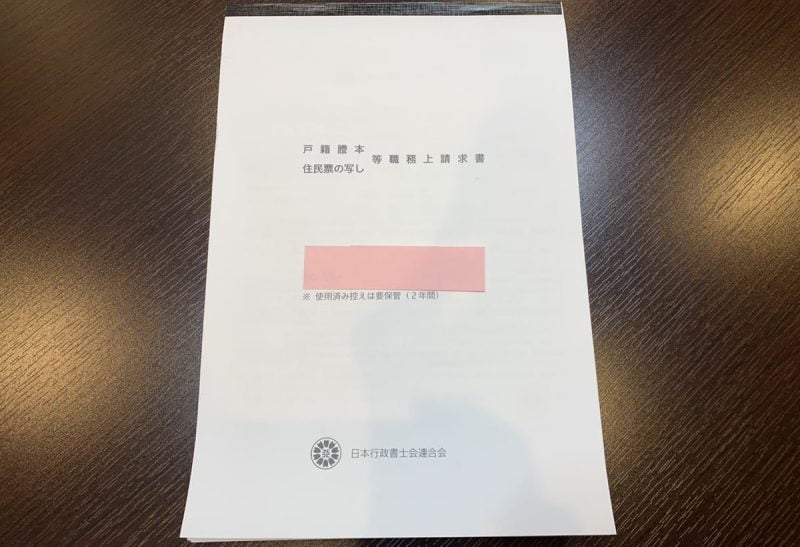 お客様ご自身でご用意いただくのが難しい、取りに行く時間が無い場合などは、私も職務上請求書を使用して、お客様の代わり戸籍や住民票を取得することが多々あります。