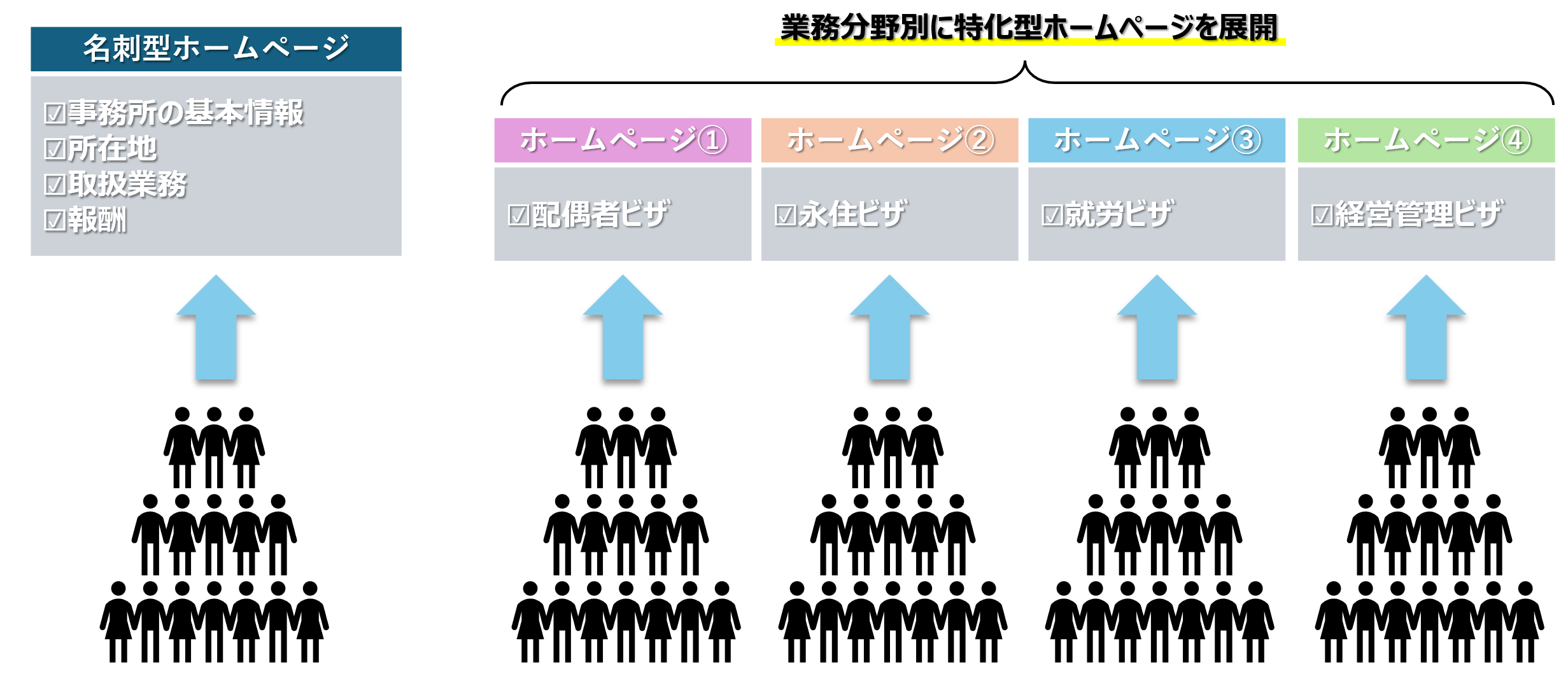また、集客型ホームページは、開業したての行政書士でもリスティング広告などを掛け合わせることで、比較的早期に売上を作ることができます。